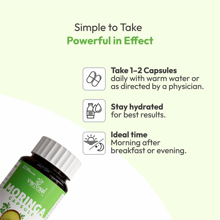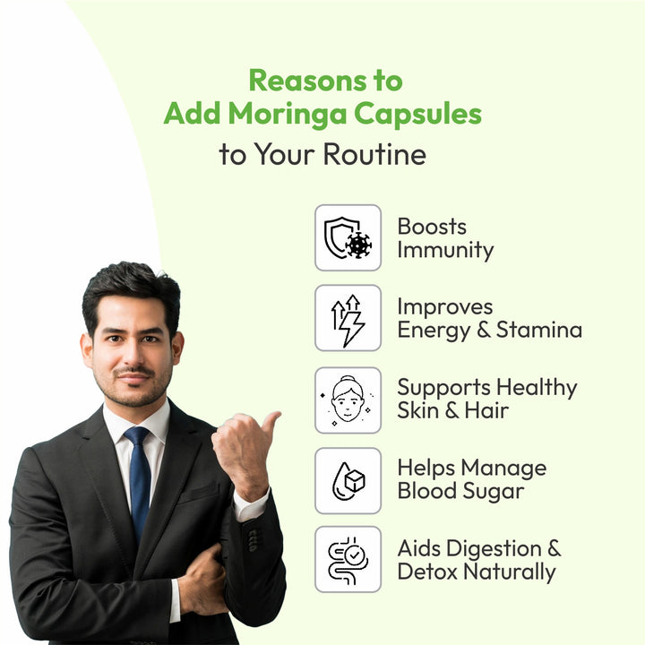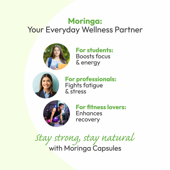 The multiple benefits of the capsule extend to metabolic health, promising support for Moringa for diabetes management through its characteristic of maintaining blood sugar levels that are healthy. Moreover, it also serves as a powerful aid when it comes to Moringa for weight loss, all thanks to its nutrient density and, along with it, certain metabolism-supporting qualities. Beyond the realm of physical health, this supplement also elevates cognitive function, providing the very noticeable Moringa for mental clarity, helping you to stay focused and sharp all across the day. Besides this, it significantly bolsters the natural defence system of the body, therefore making Moringa for immunity a key benefit which protects against common illnesses and also environmental stressors.