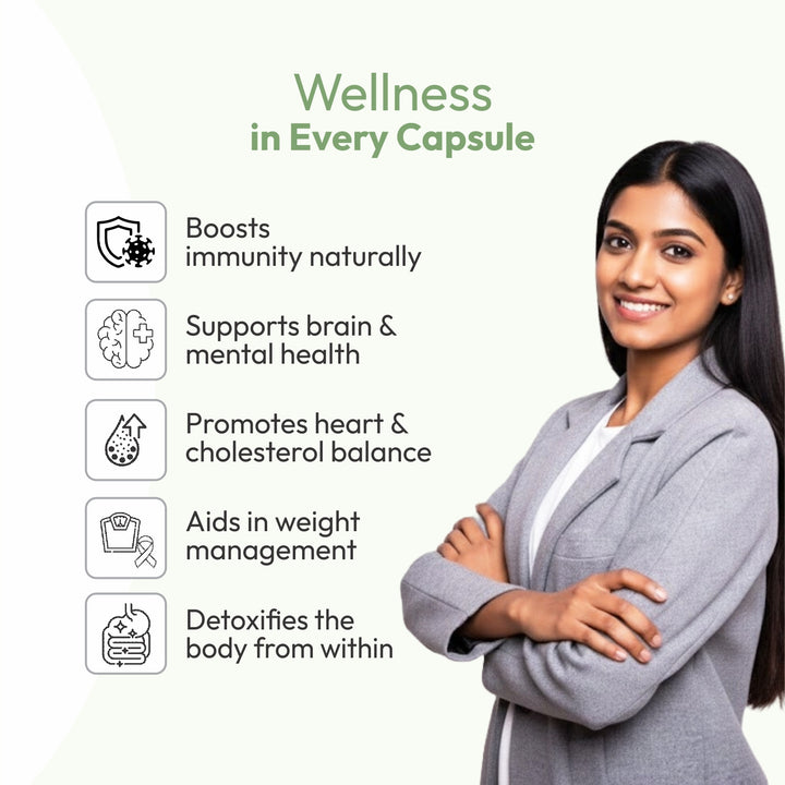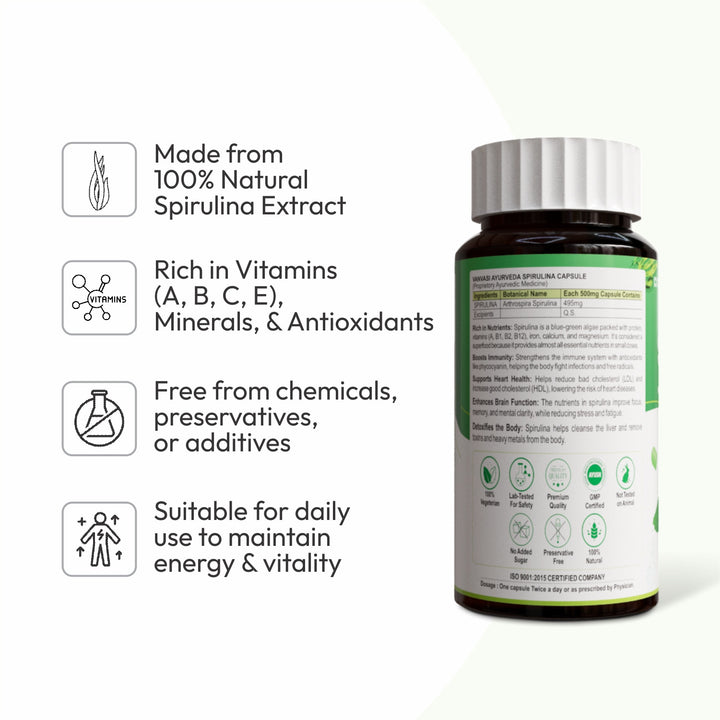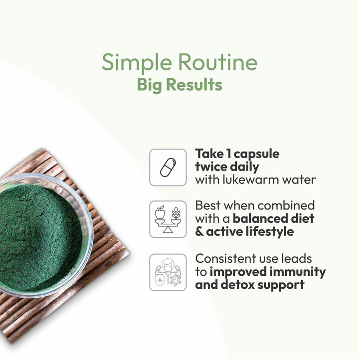 The benefits of the capsule extend to cognitive function too, offering quite prominent advantages for Spirulina for mental health through offering essential nutrients that support brain function and its focus, as well as emotional balance. Those who happen to be looking out for fitness goals will surely appreciate its effectiveness, as its Spirulina for weight loss quality comes with high protein content, with its nutrient density helping to control appetite while at the same time offering sustained energy. Besides, it also serves as a powerful natural agent for Spirulina for detox, as it gently cleanses your system of the accumulated toxins and, along with it, heavy metals while simultaneously offering overall cellular health.