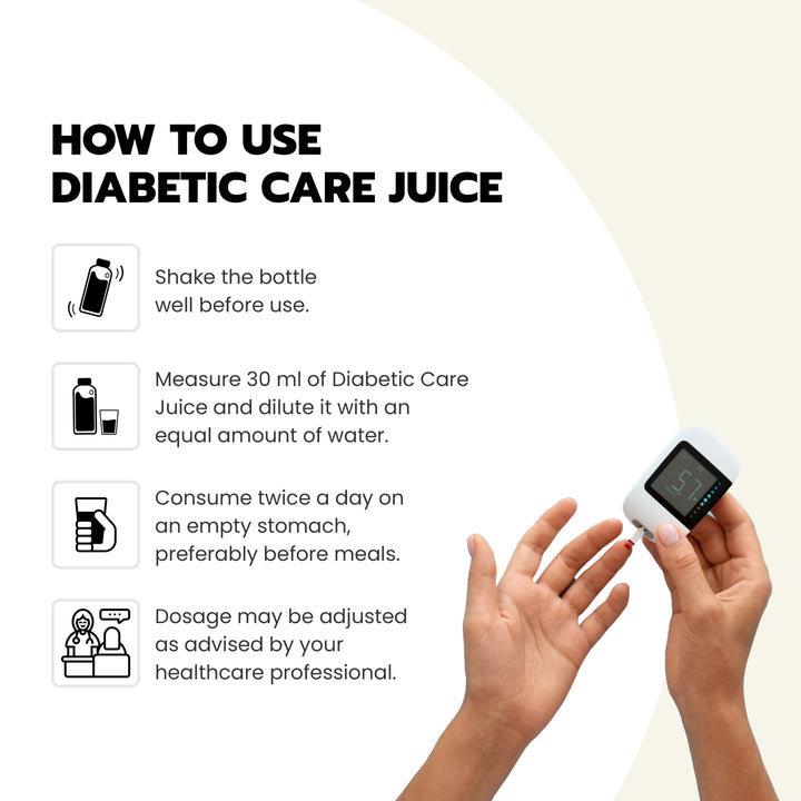 - Undoubtedly, managing diabetes requires a complete , and Diabetic Care Juice offers that very desired natural solution to support blood sugar control and enhance the overall wellness. Crafted with high-quality herbs such as jamun, which is rich in fiber so as to regulate glucose absorption, and amla, which happens to be a potent antioxidant that boosts infection-fighting ability, this juice addresses diabetes and its complications effectively.
